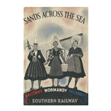 Margaret BradleyAn original hand-painted artwork for a Southern Railway travel publication, Sands Across the Sea, by Margaret Bradley, 1937. The design features three women wearing traditional costumes associated with Brittany, Normandy and Picardy (France). The artwork is sold mounted with a copy of the published booklet. A higher resolution image is available for viewing on request.