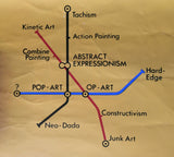 Hans UngerOriginal travel poster, Art Today, designed by Hans Unger and published by London Transport in 1966. An uncommon poster, intended to promote trips to see contemporary art in the Capital, with witty advertising copy and an adapted Tube map. According to the designer Brian Webb, Unger used "the geometric form of the map to signal new directions in contemporary art. The frontier stations include Kinetic Art, Combine Painting, Pop Art, Neo-Dada, Constructivism, and Junk Art. All can apparently be found in one of London’s galleries by the explorer equipped with ‘an open mind, Underground and bus maps and a sense of humour" [quoted in A Century of Art & Design. London Transport Posters, 2007].