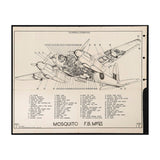 De Havilland Aircraft Co. LtdAn original Second World War Aircraft Identification General Arrangements Drawing of an RAF Mosquito F.B Mk VI, 1944. Double sided. From a training manual issued to air force personnel. Published by De Havilland Aircraft Co. Ltd.